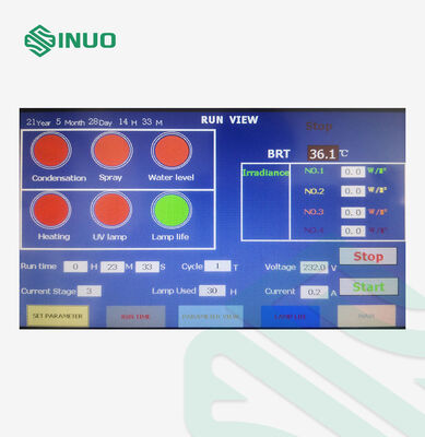 यह यूवी त्वरित उम्र बढ़ने परीक्षण कक्ष अपने प्रकाश स्रोत के रूप में उच्च गुणवत्ता वाले आयातित यूवीए-340 फ्लोरोसेंट यूवी लैंप का उपयोग करता है।प्राकृतिक सूर्य के प्रकाश में पराबैंगनी विकिरण जैसे महत्वपूर्ण पर्यावरणीय कारकों का अनुकरण करकेरात में ठंडा होने, संघनक होने और वर्षा होने के बाद, कक्ष में सामग्री की उम्र बढ़ने के प्रतिरोध का आकलन करने के लिए त्वरित मौसम परीक्षण किया जाता है।